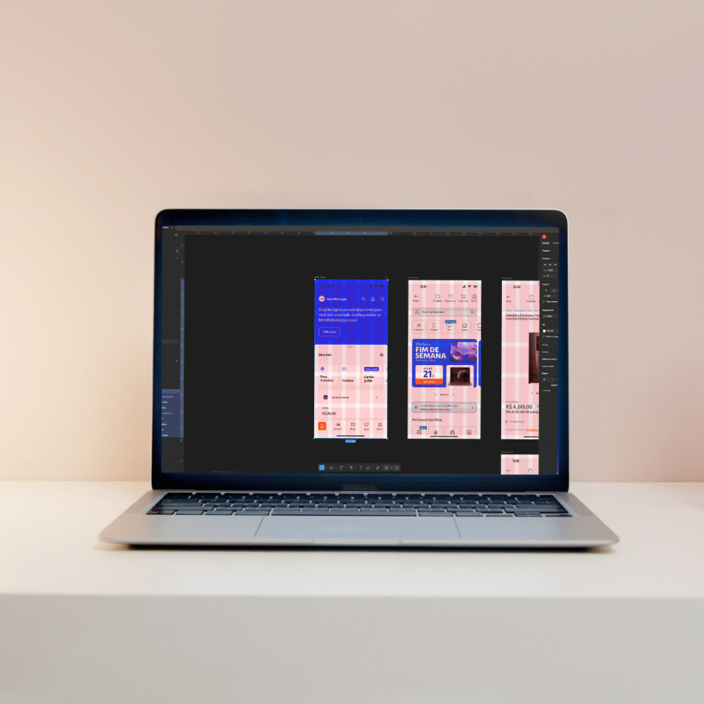 Organizei a base visual no Figma, definindo paleta cromática, tipografia e estilos do design system, com grids e breakpoints que garantem responsividade consistente em app, web, caixa eletrônico e smartwatch.